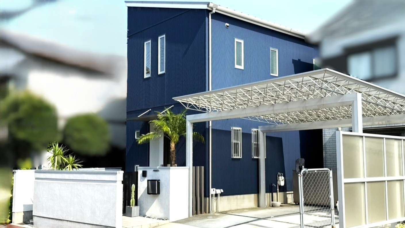 綺麗なネイビーのお家✨ 道路に面しているので、防犯の為に色々な工夫がされています。