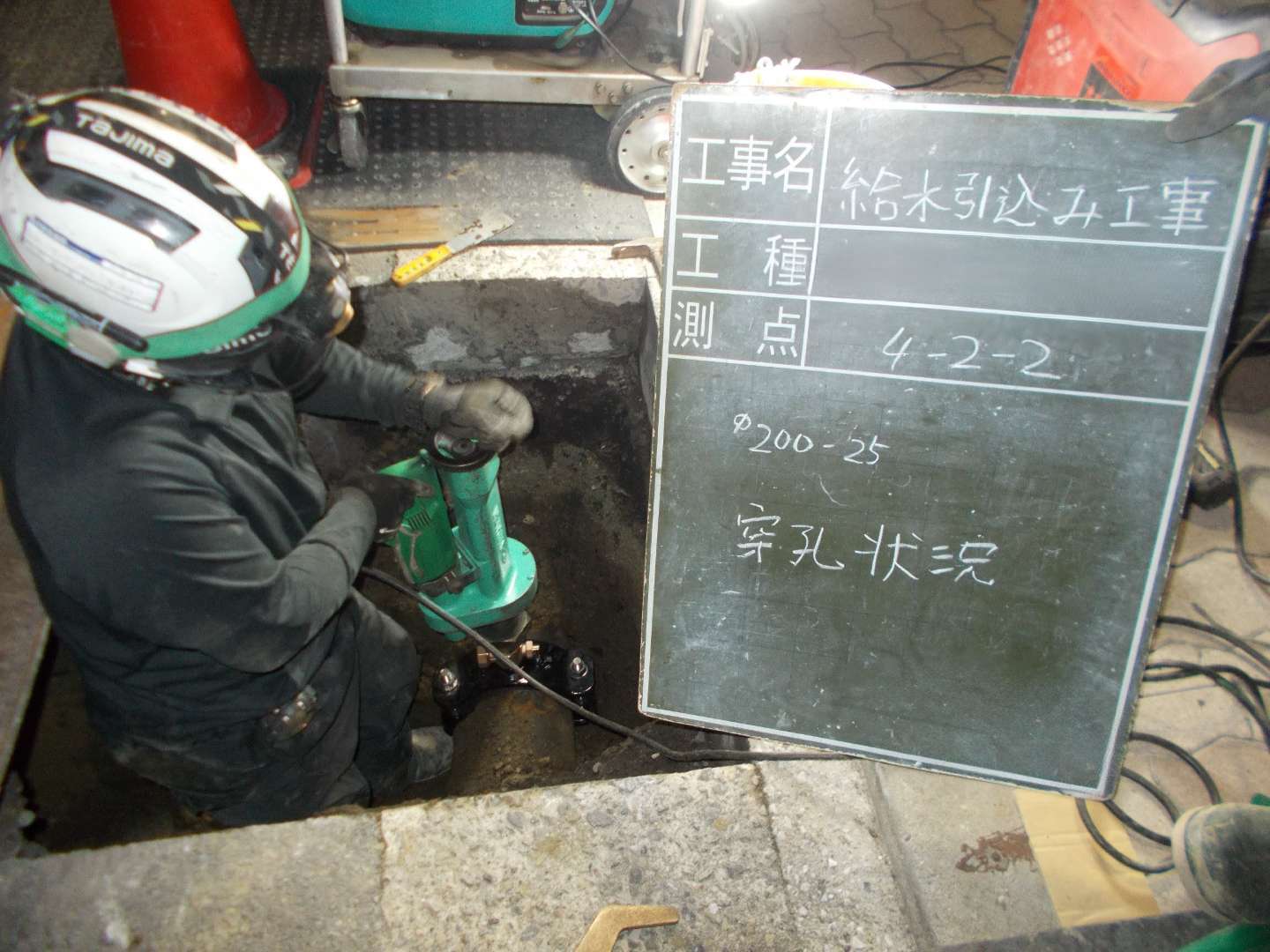 - 掘削作業: 道路を舗装を切断し、水道本管が埋設されている深さまで掘り進めます。