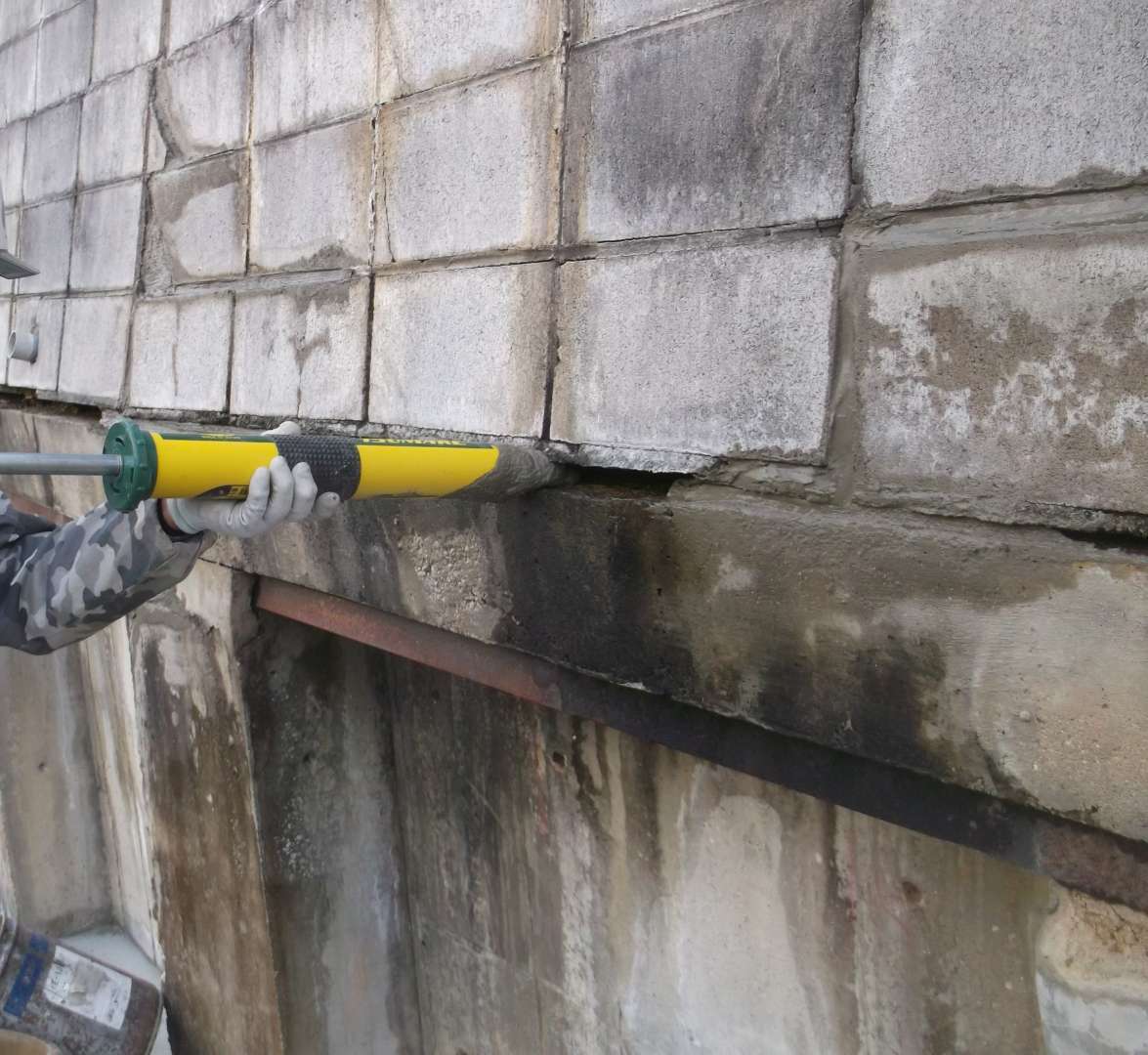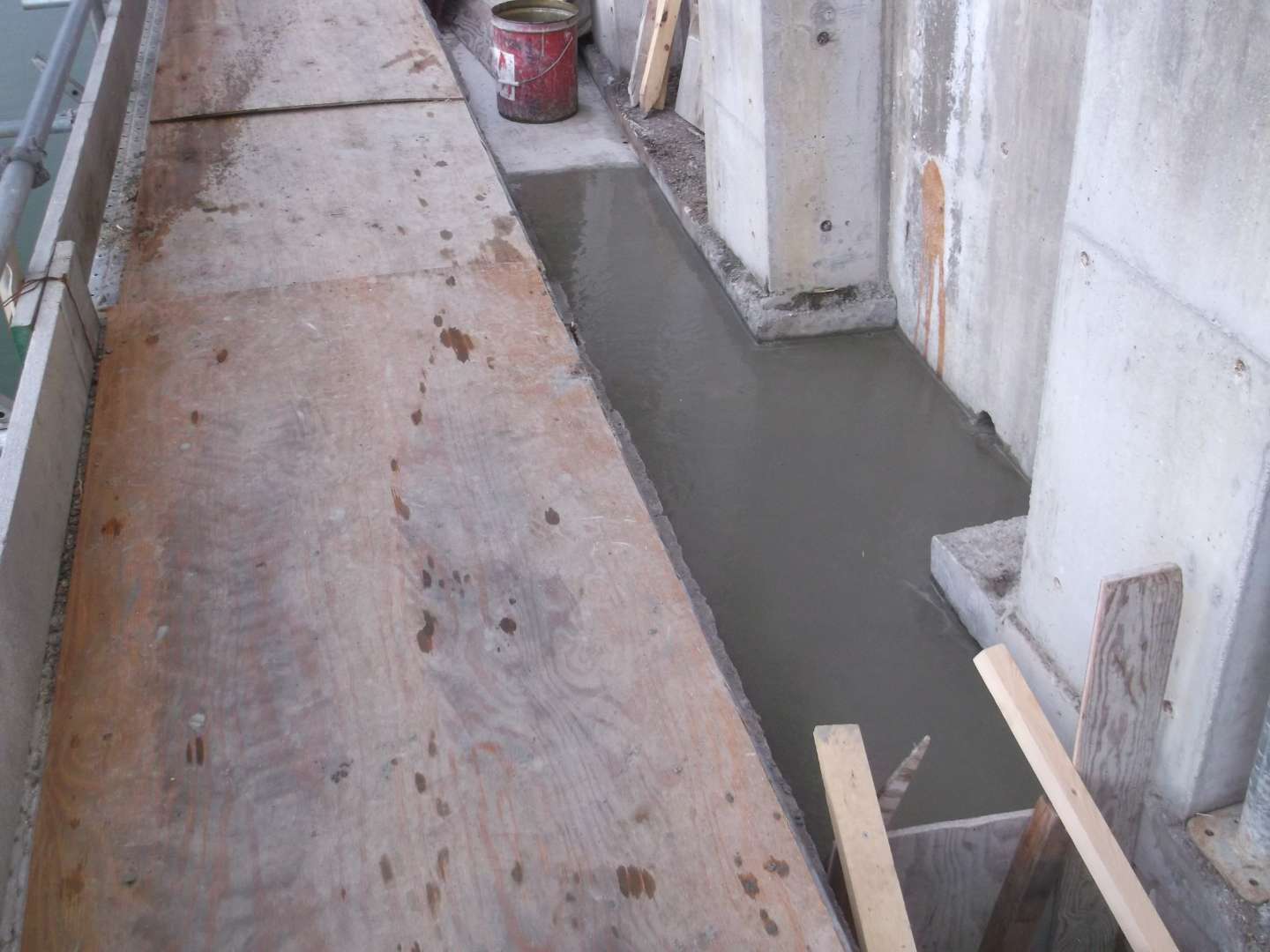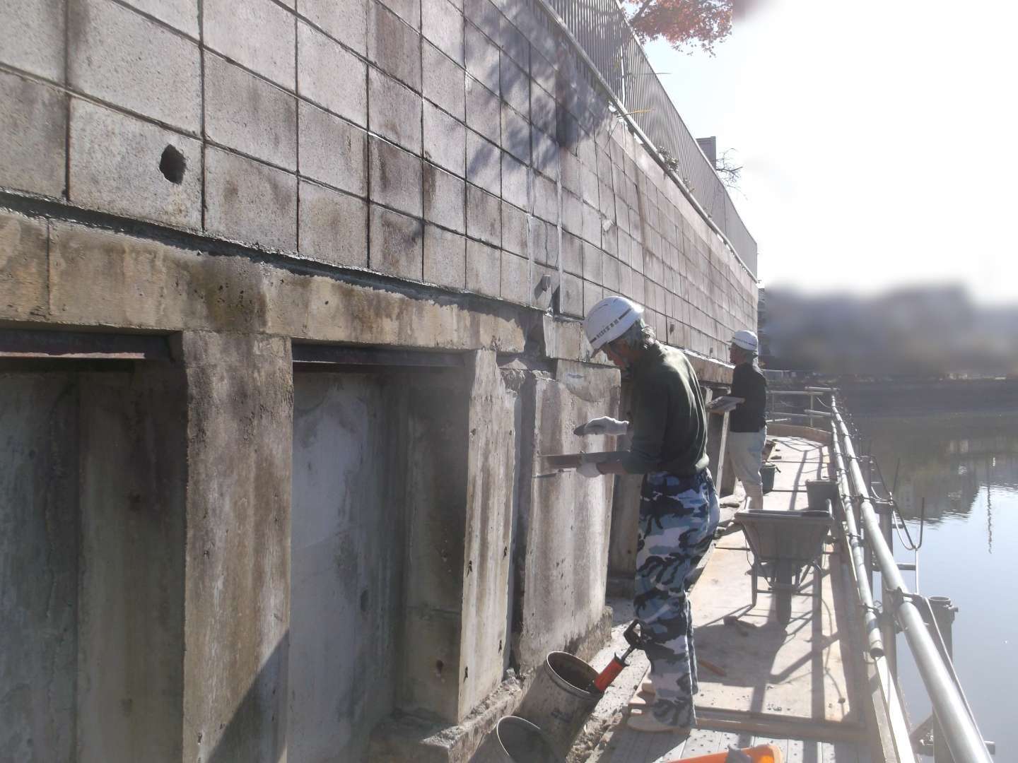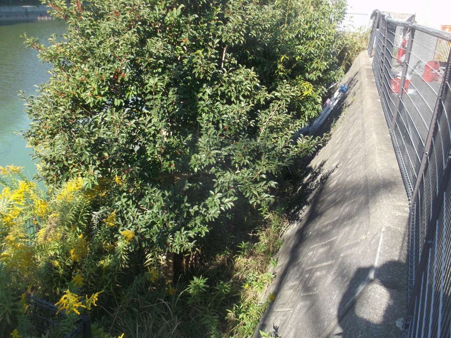 貯水池側の堤体は、波や水位変動による浸食を防ぐために、コンクリートブロックなどで保護するのですが、鉄骨を入れて補強する事により、より安全な堤になっています。